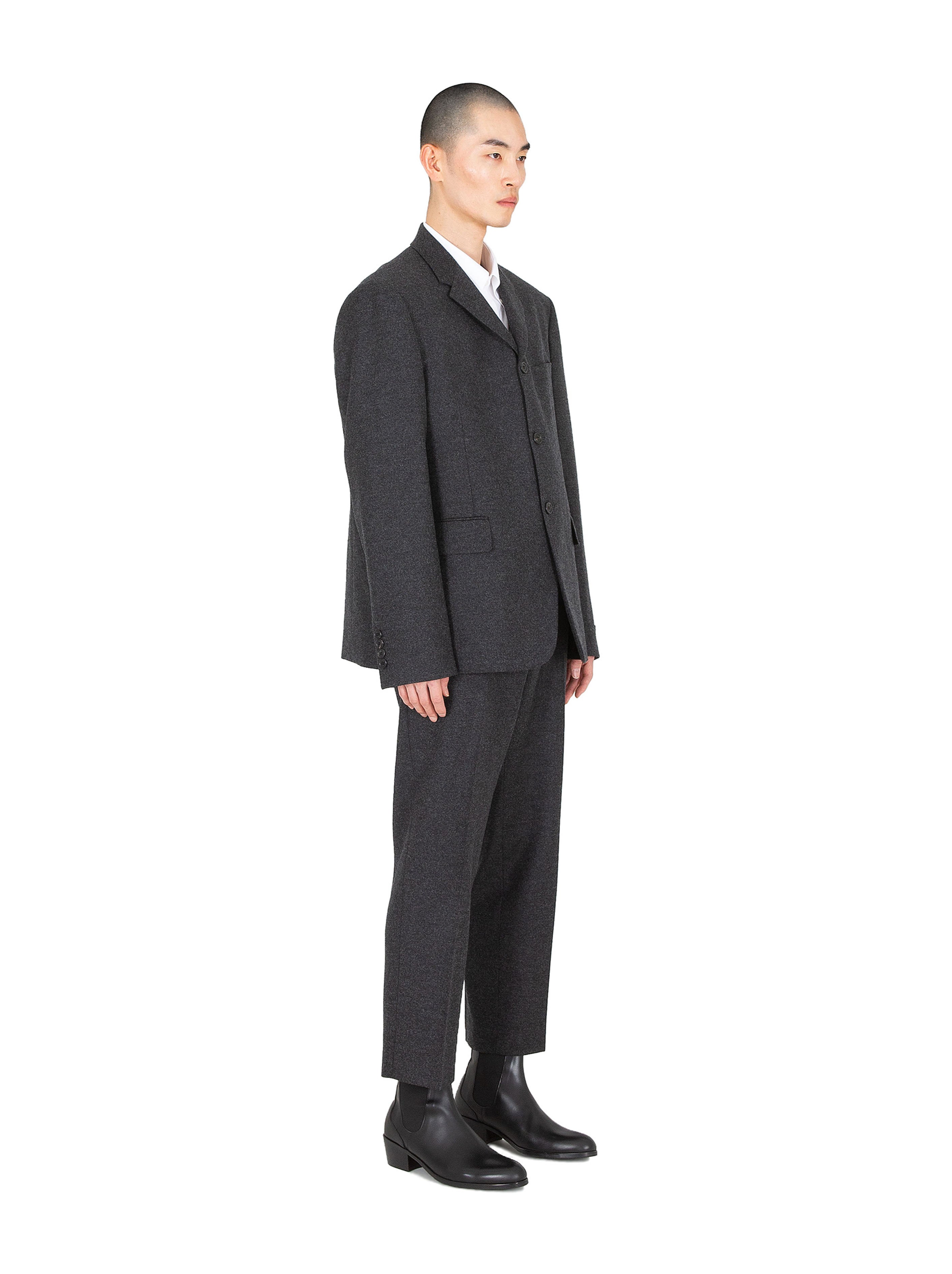 vibramアウトソールとマットな質感のblack marble leather使用