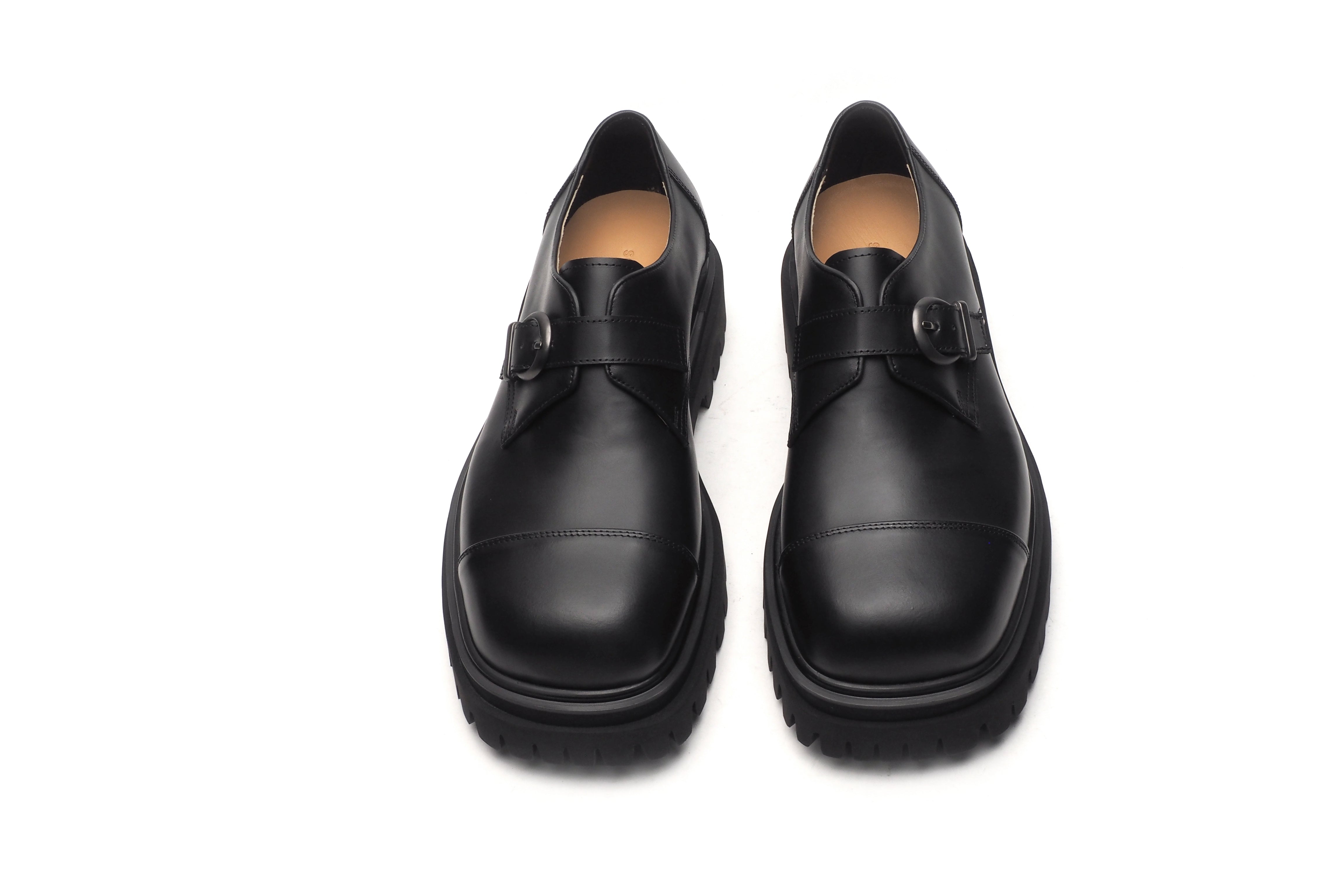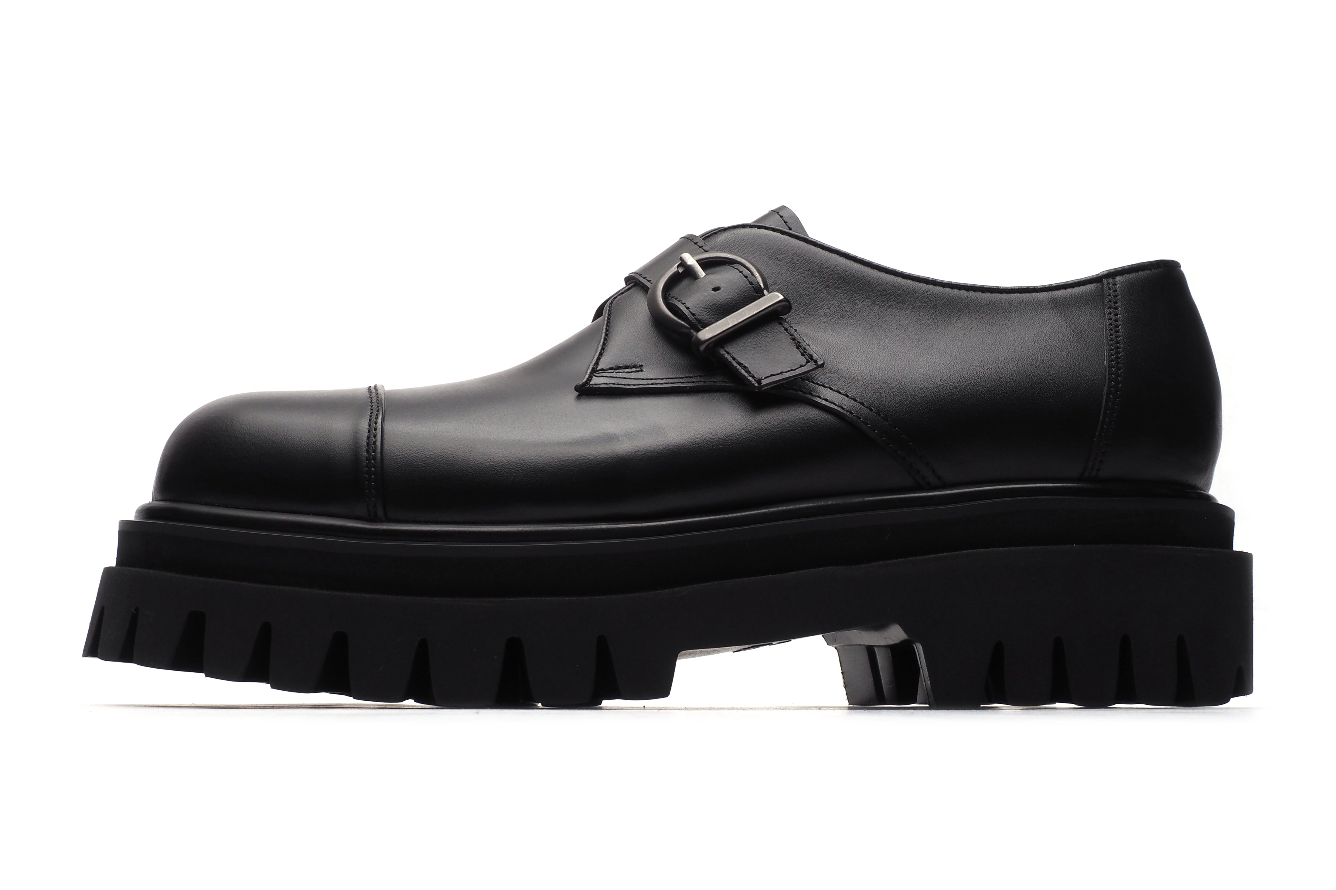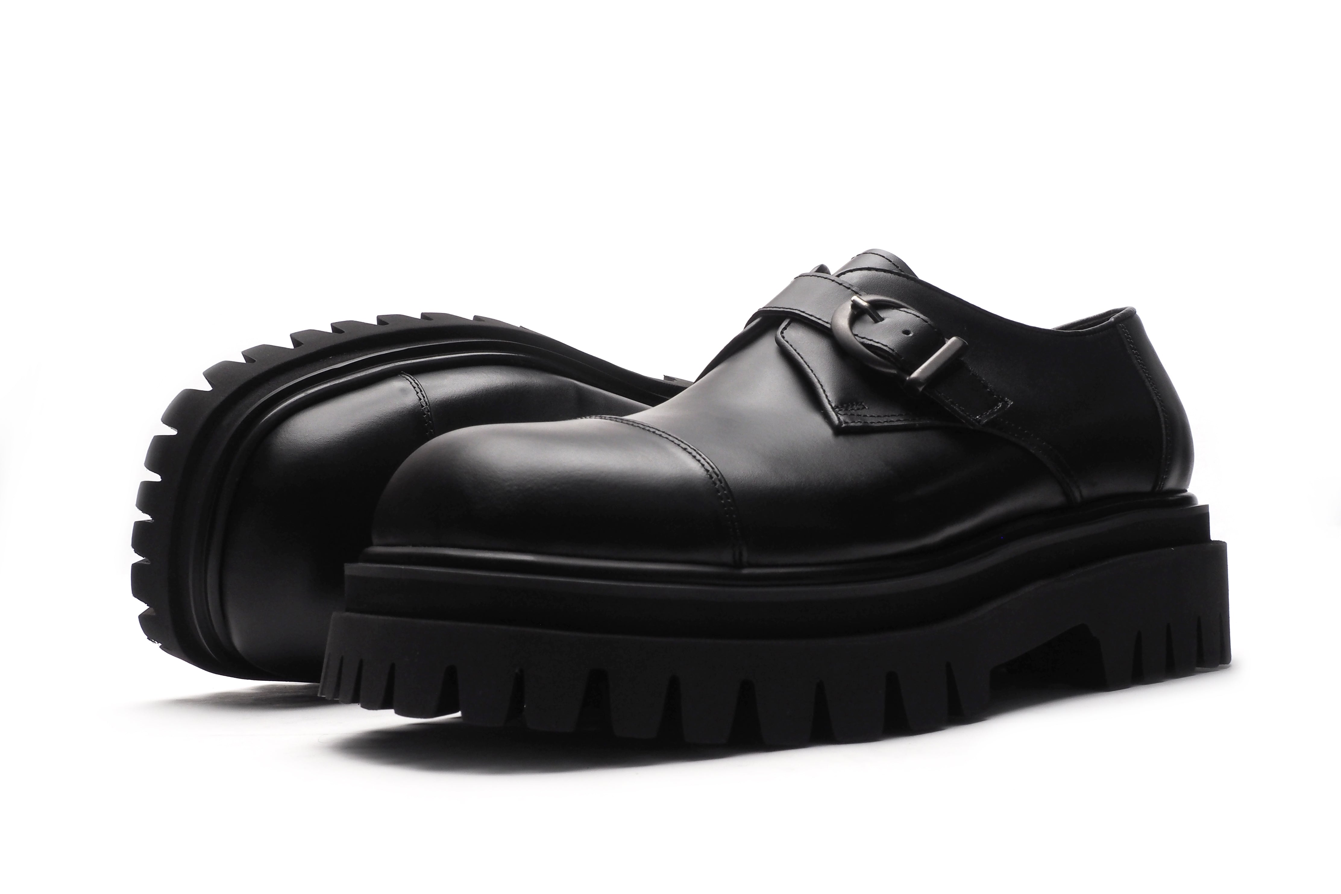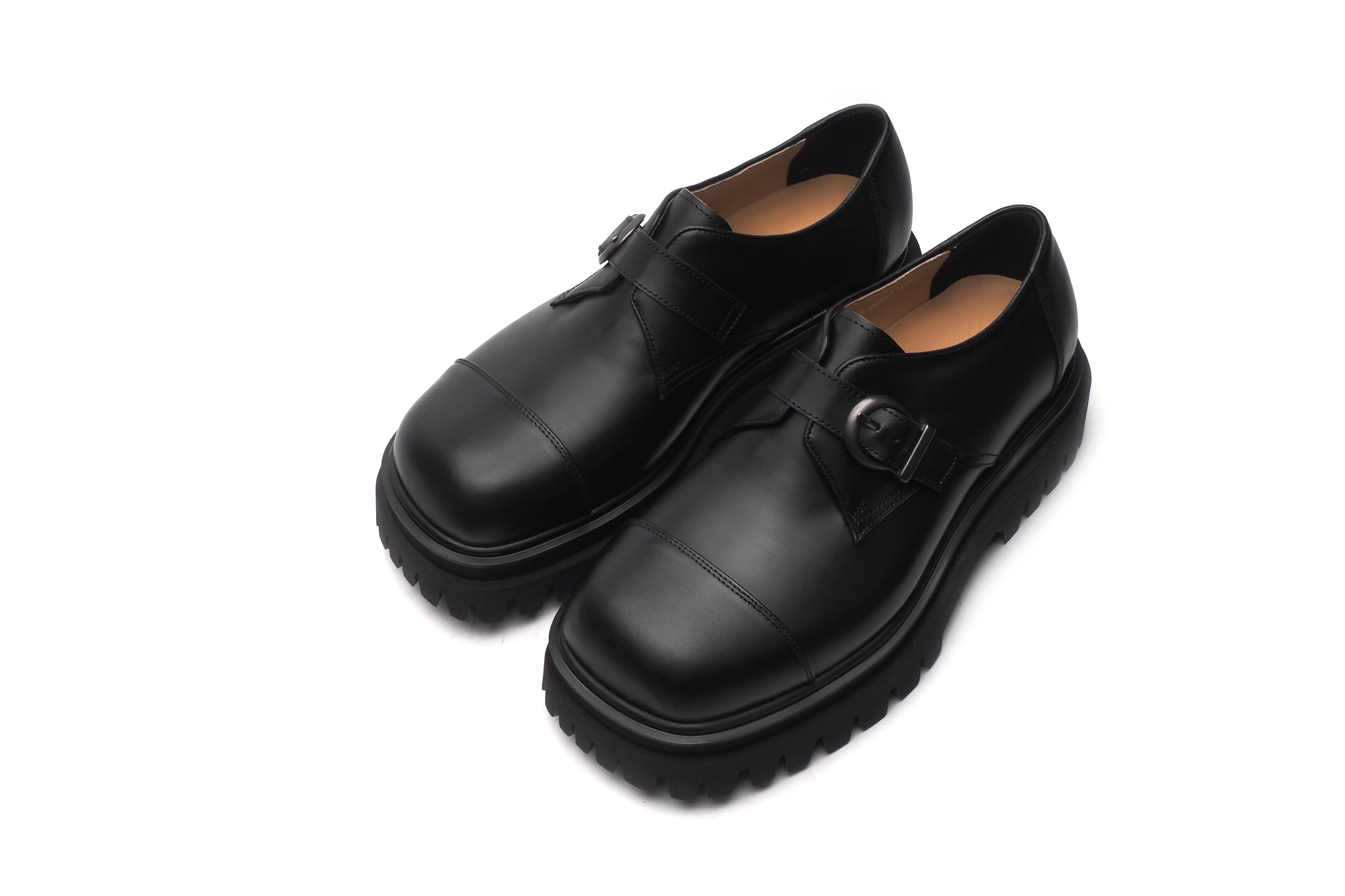 ワンポイントのベルトとギザギザしたソールが個性的でありながら、使いまわしやすいフォルムとなっております。