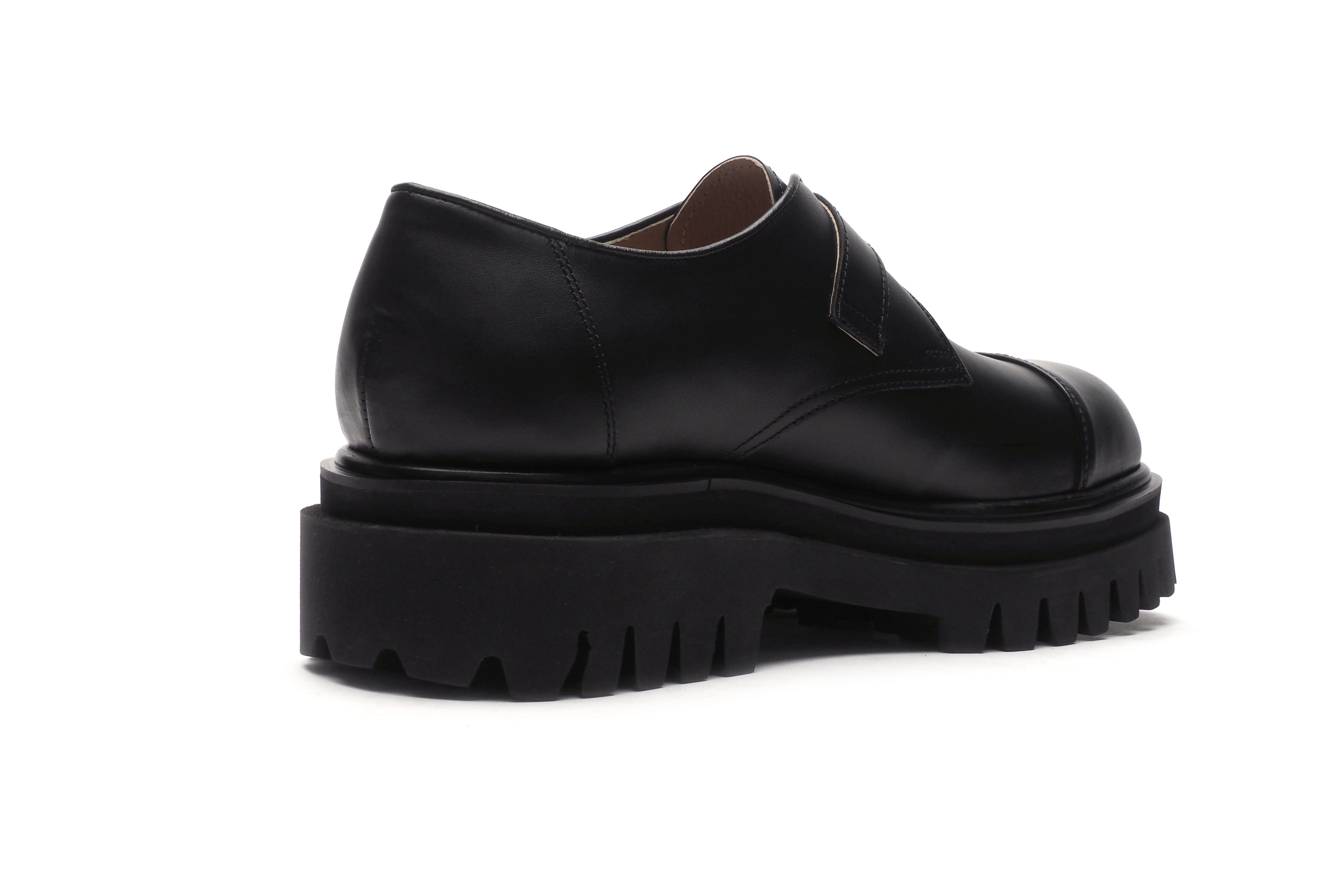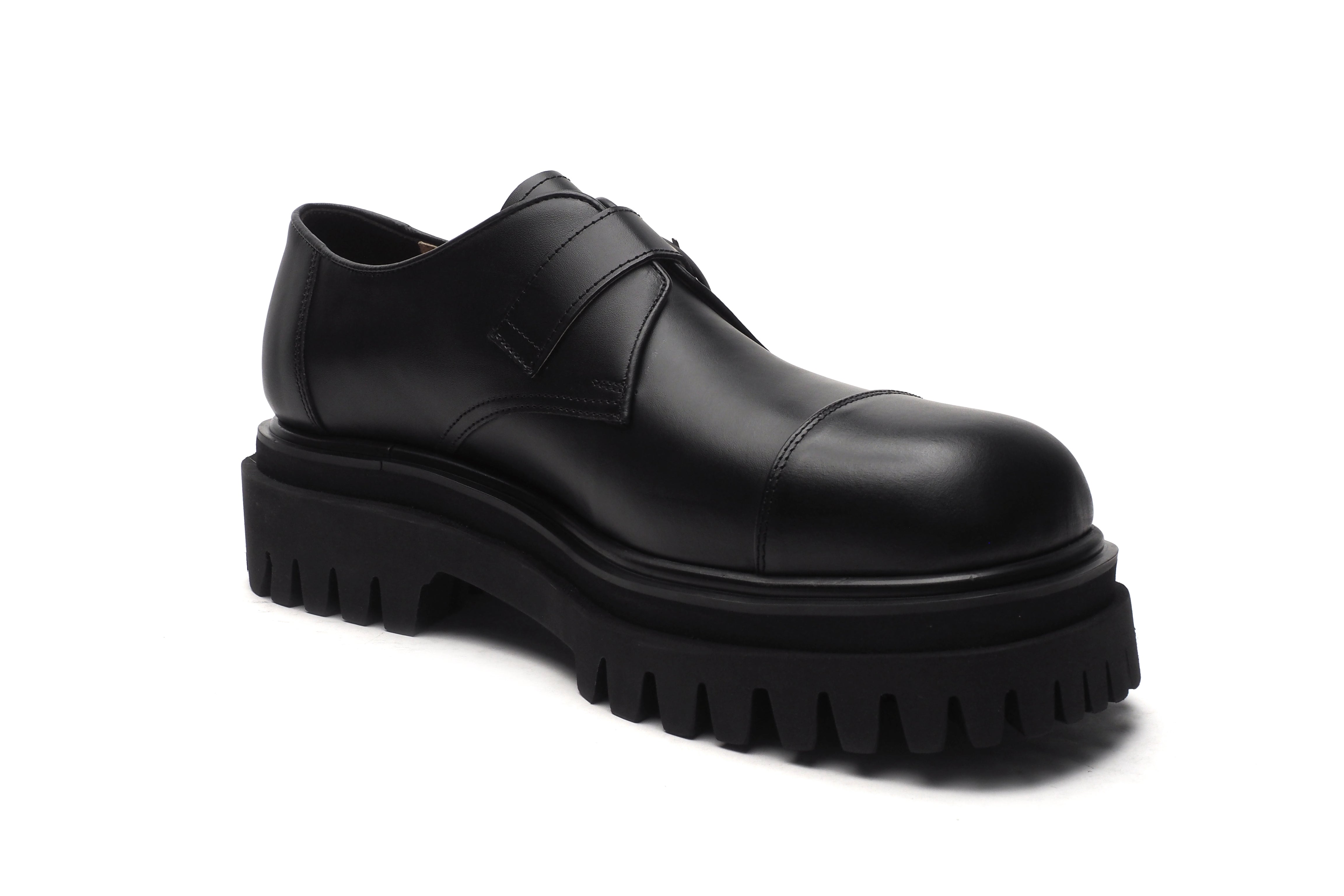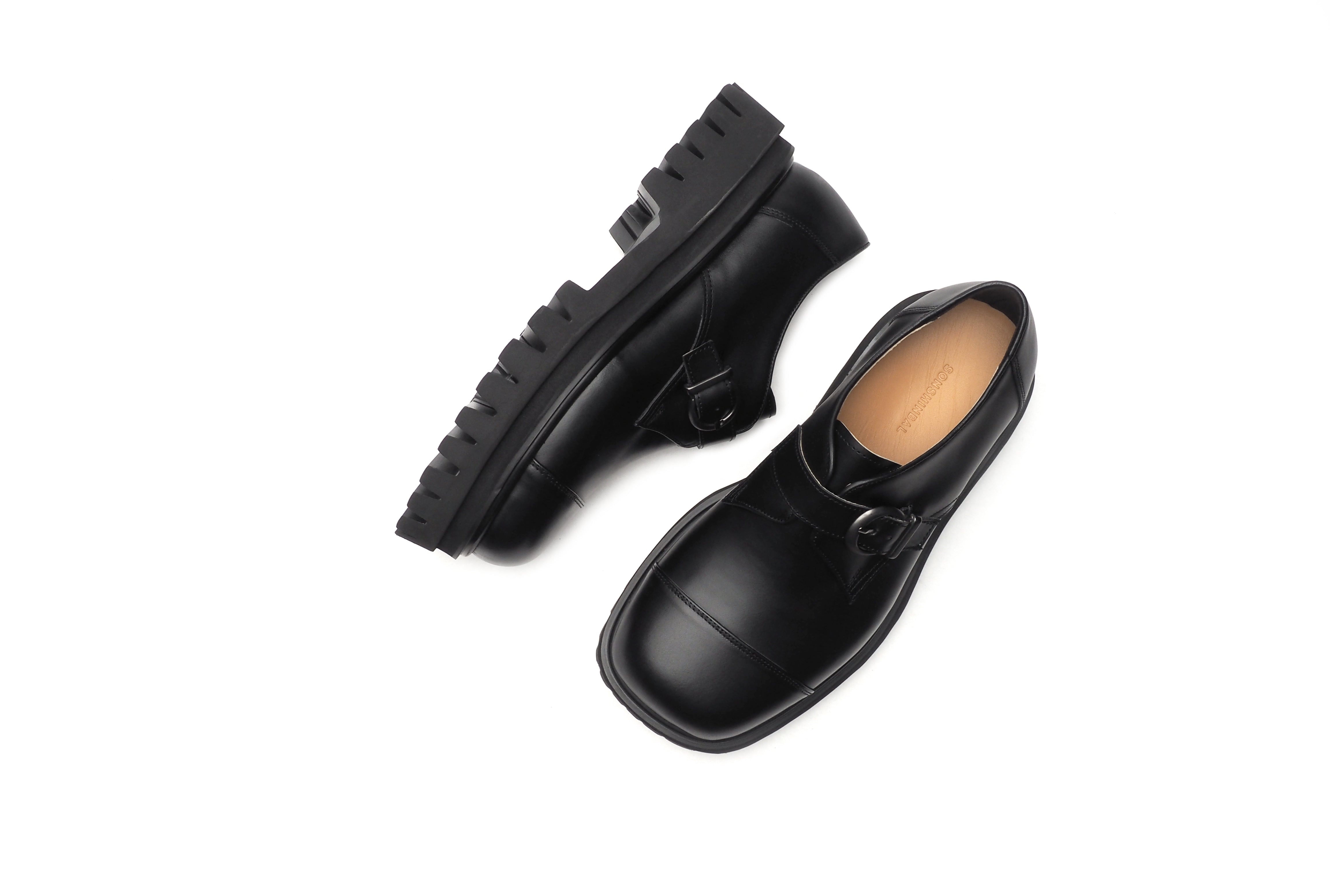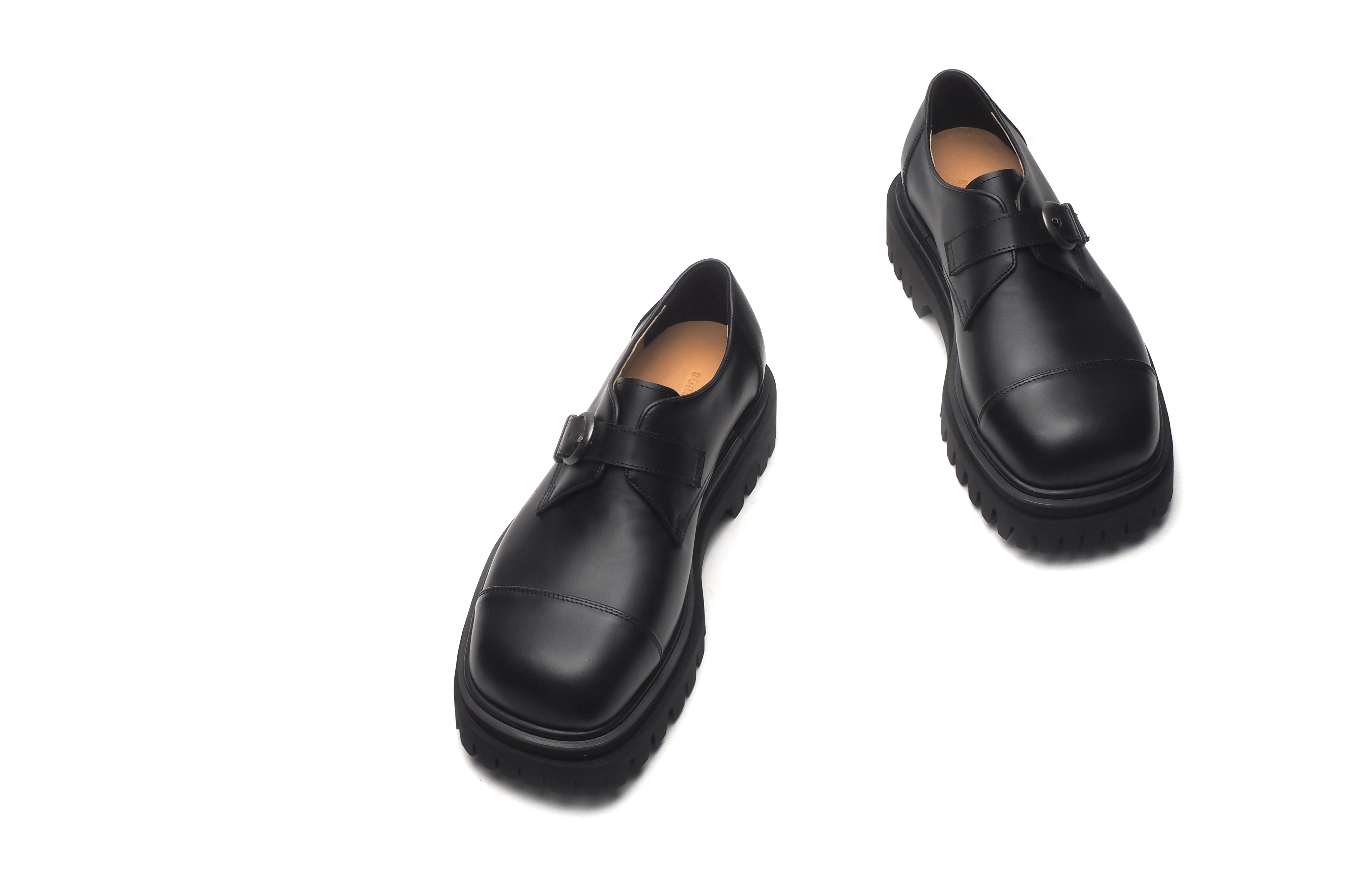 ワンポイントのベルトとギザギザしたソールが個性的でありながら、使いまわしやすいフォルムとなっております。