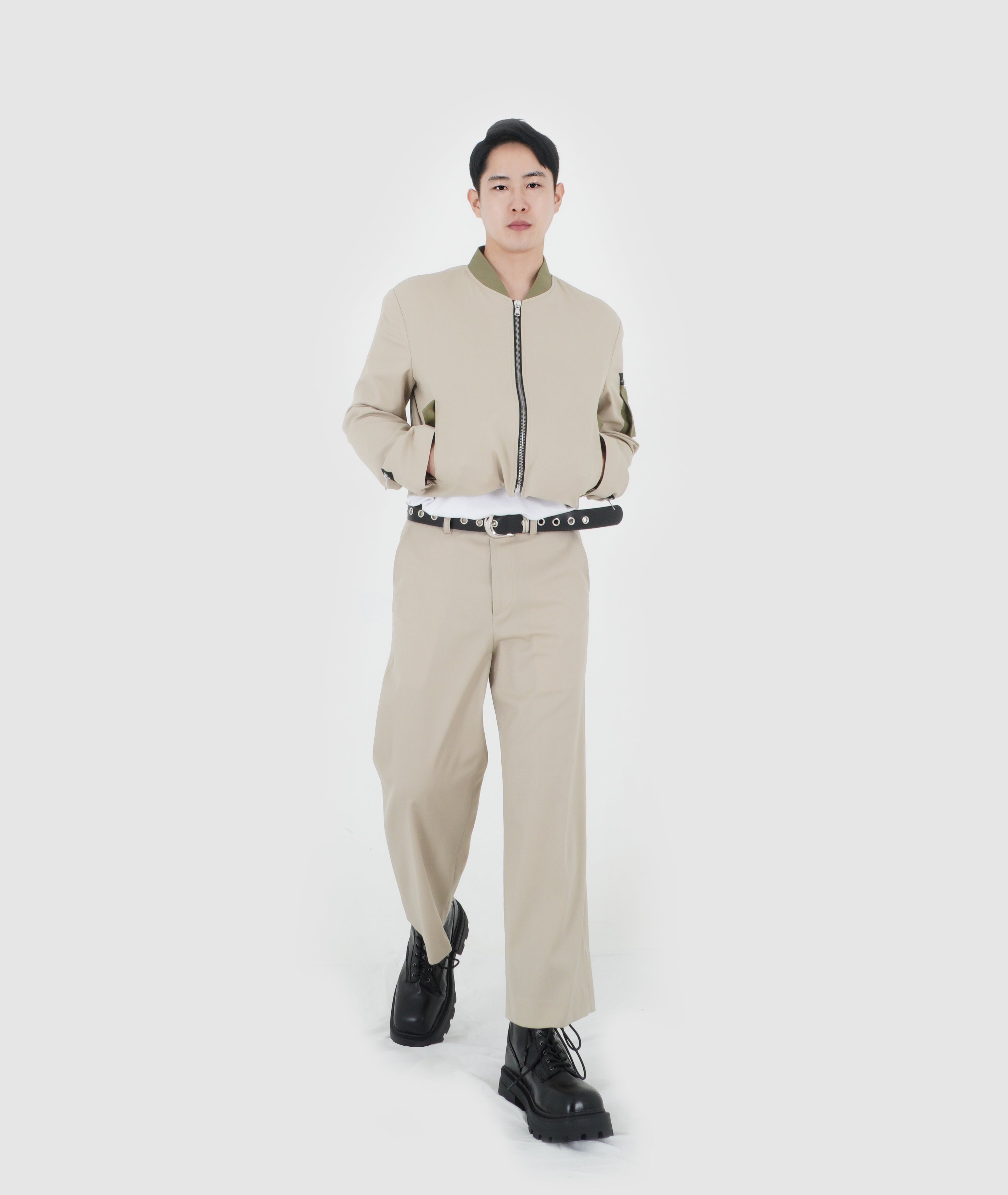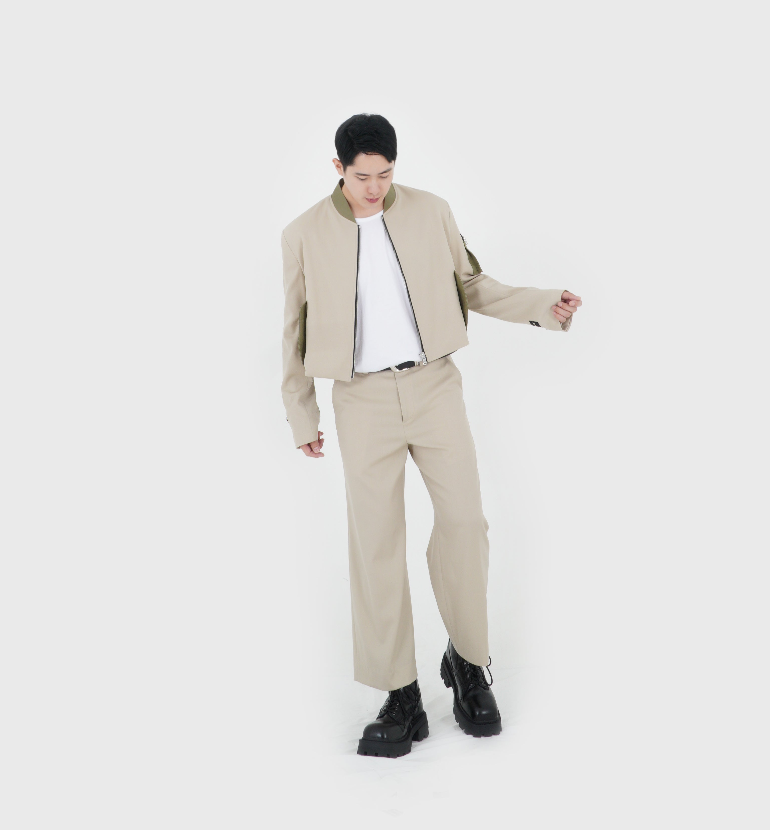 CROPPED TECH BOMBER (LIGHT BEIGE)
