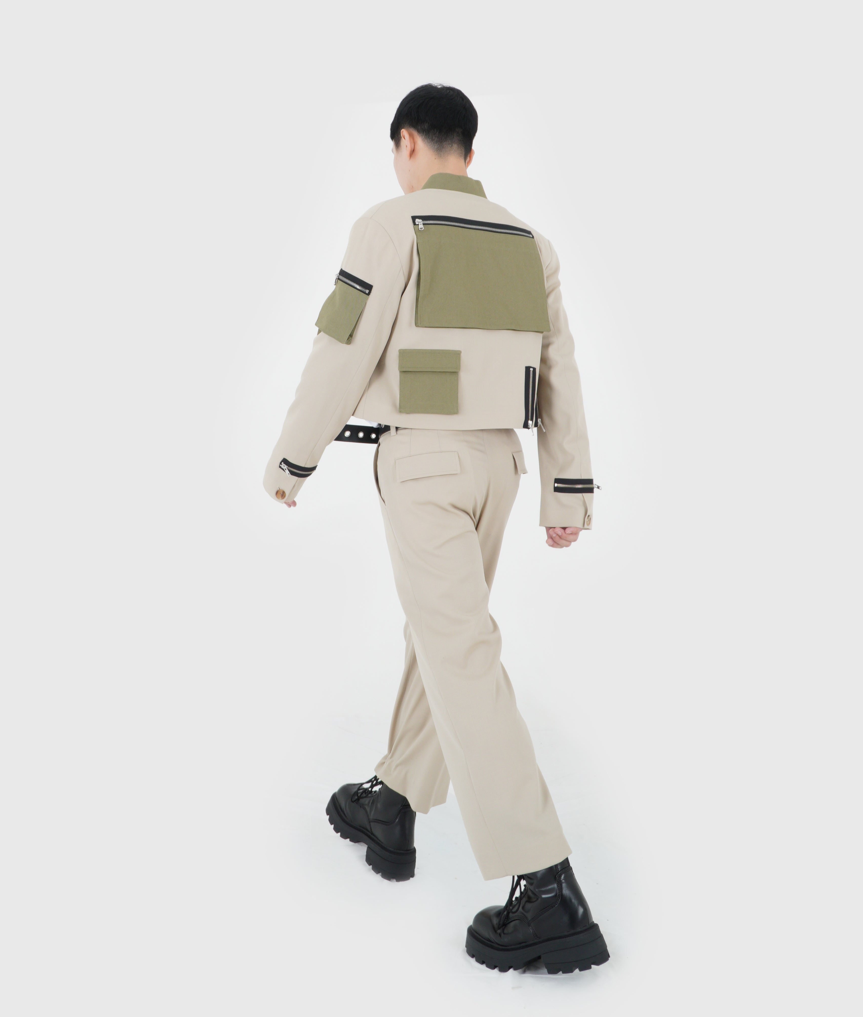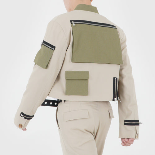 UNBALANCED CROPPED JACKET (KHAKI GREEN)
