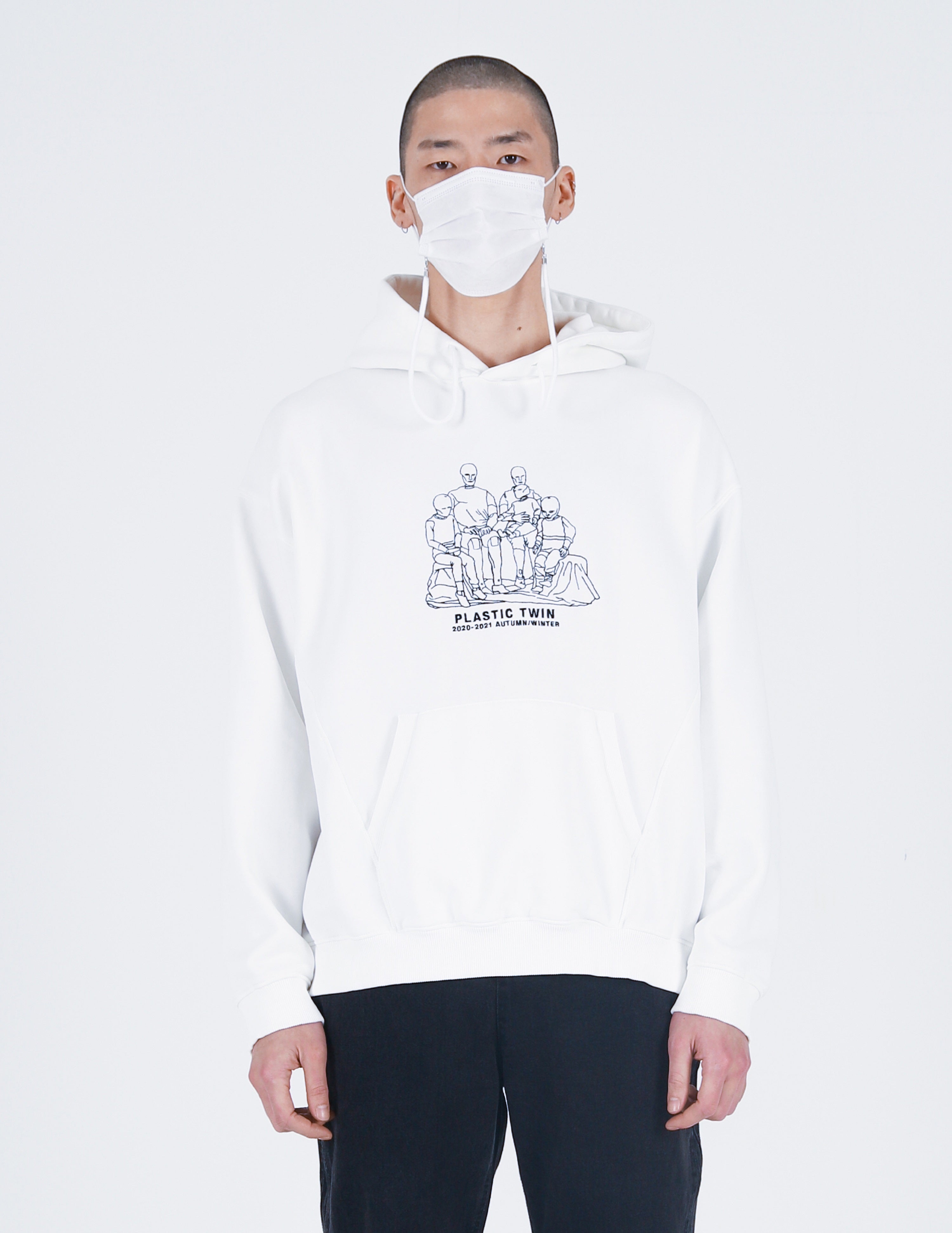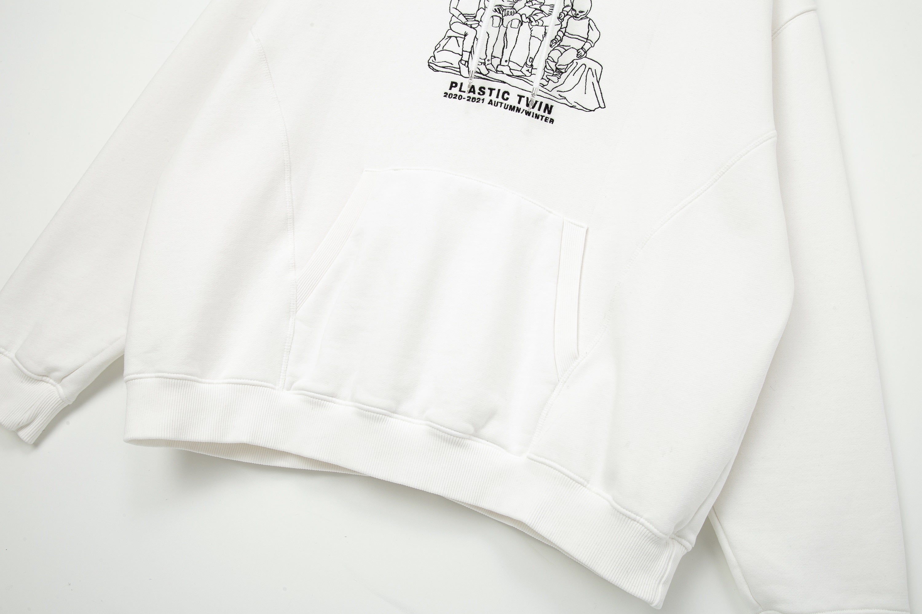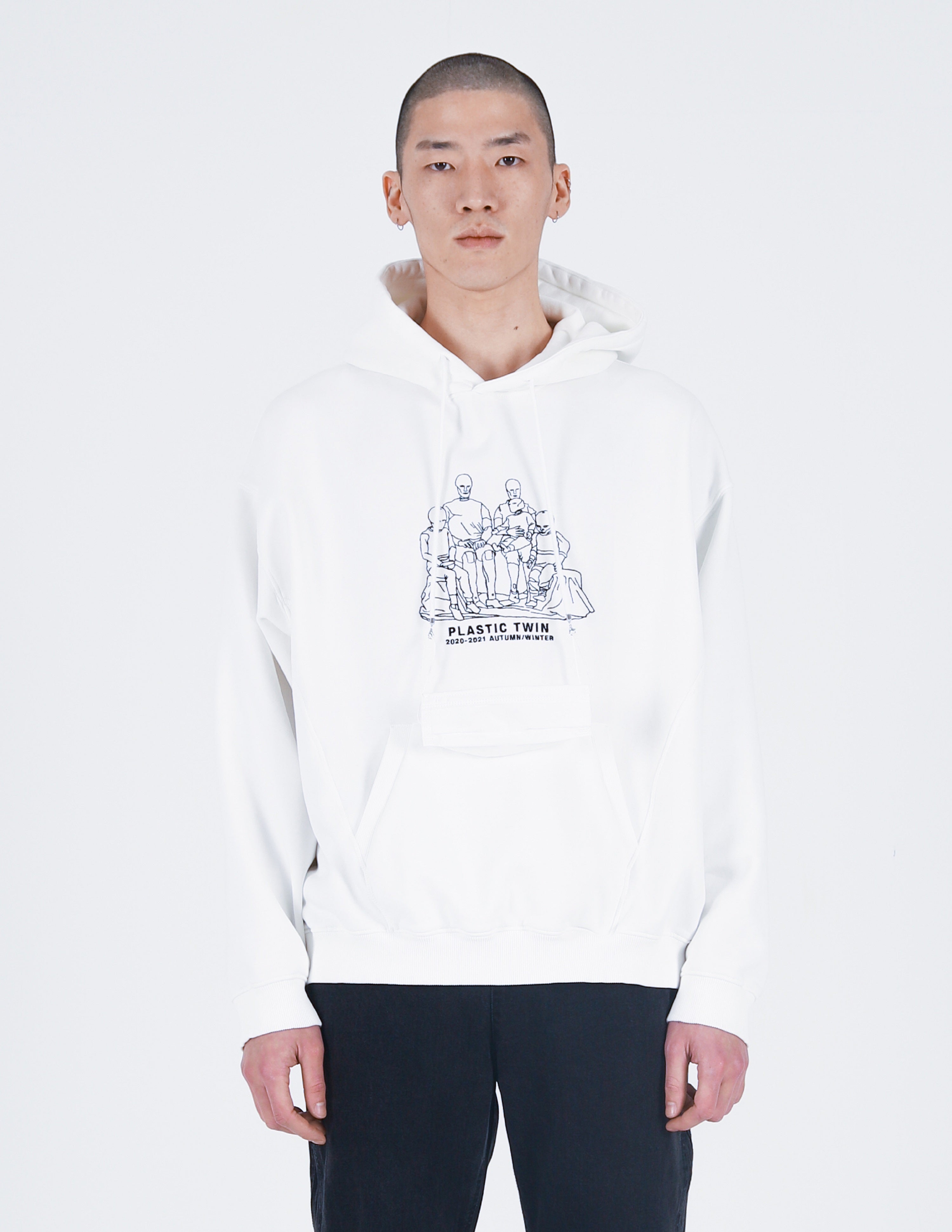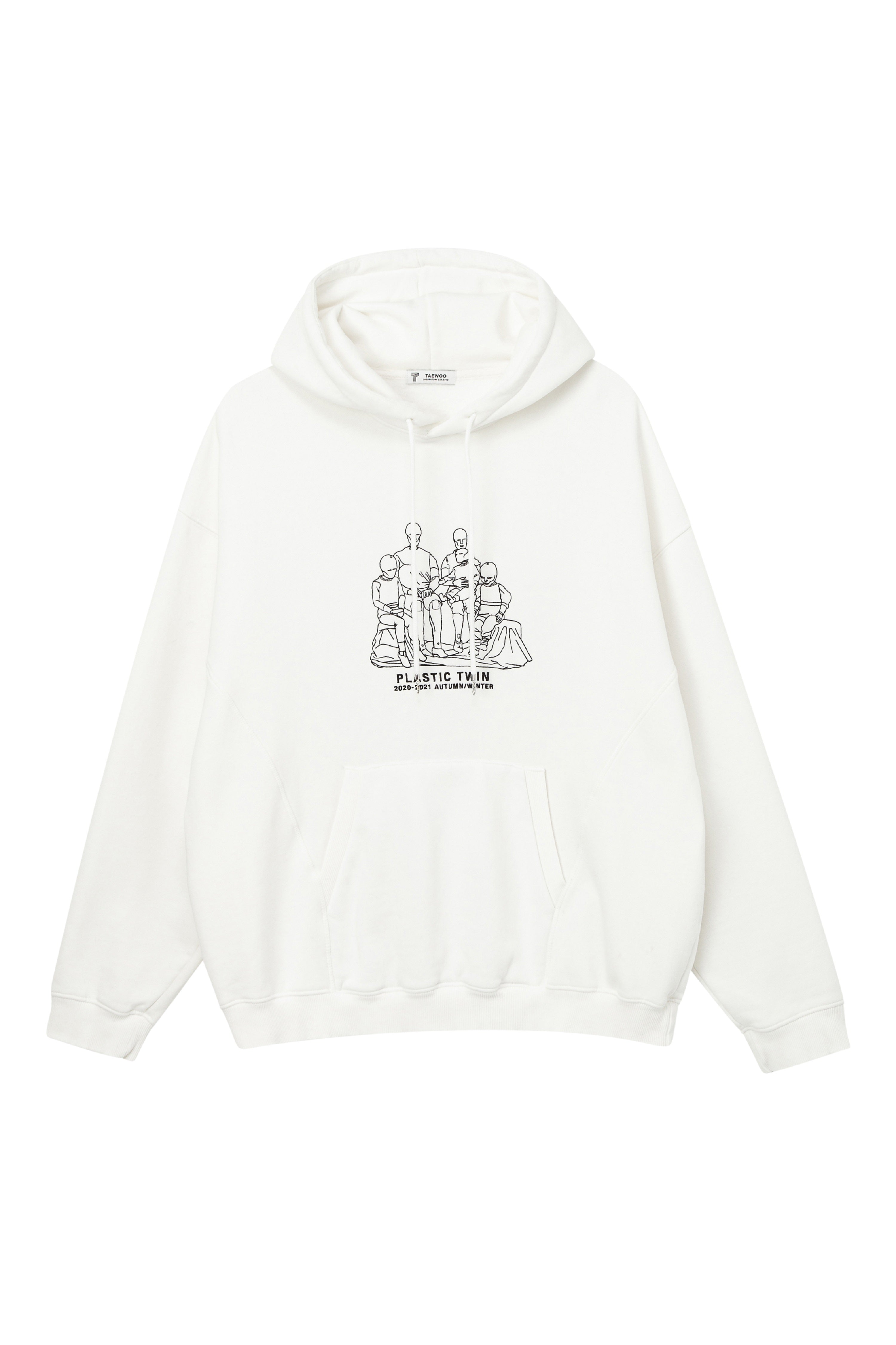 Plastic twin Embroidery Hoodie White