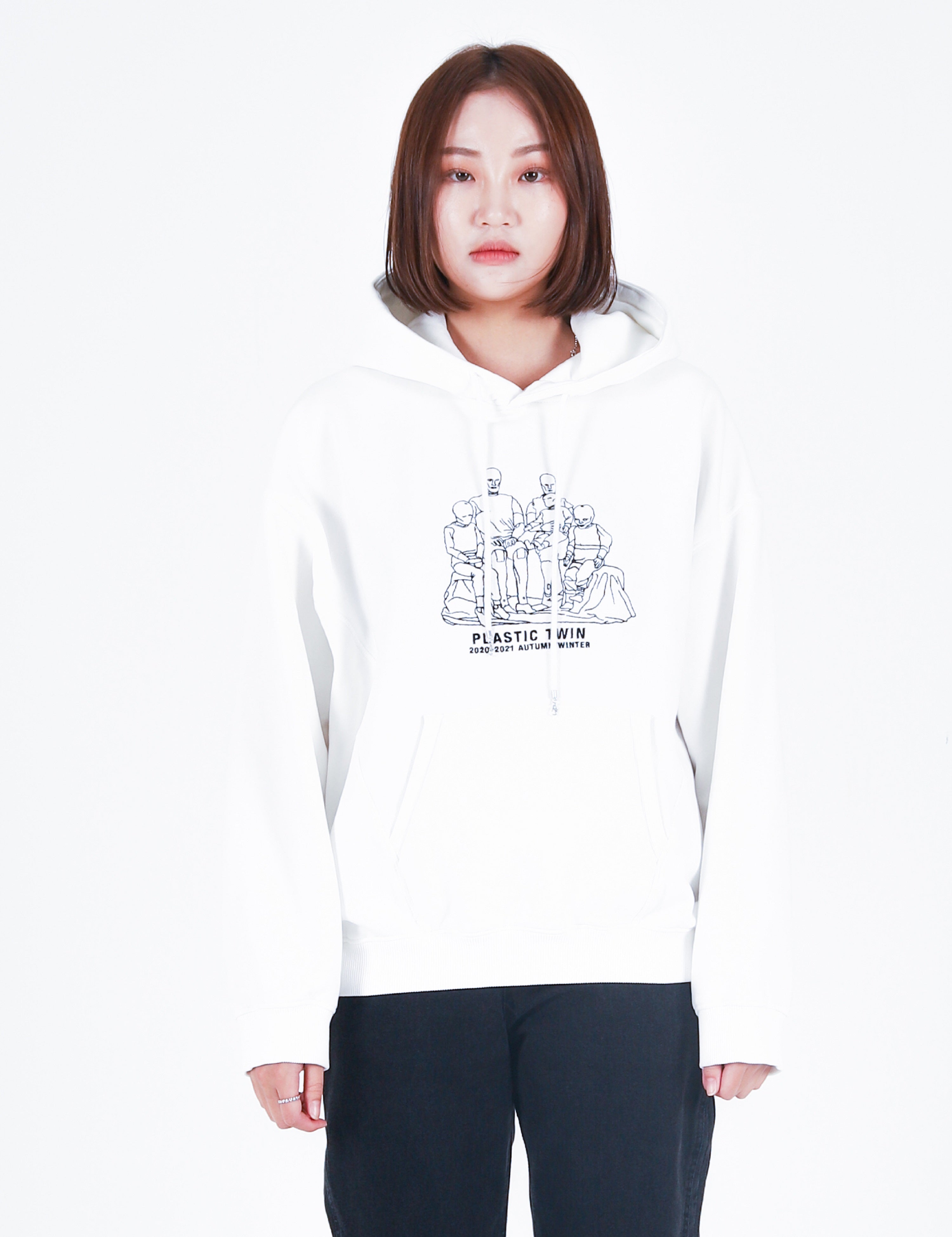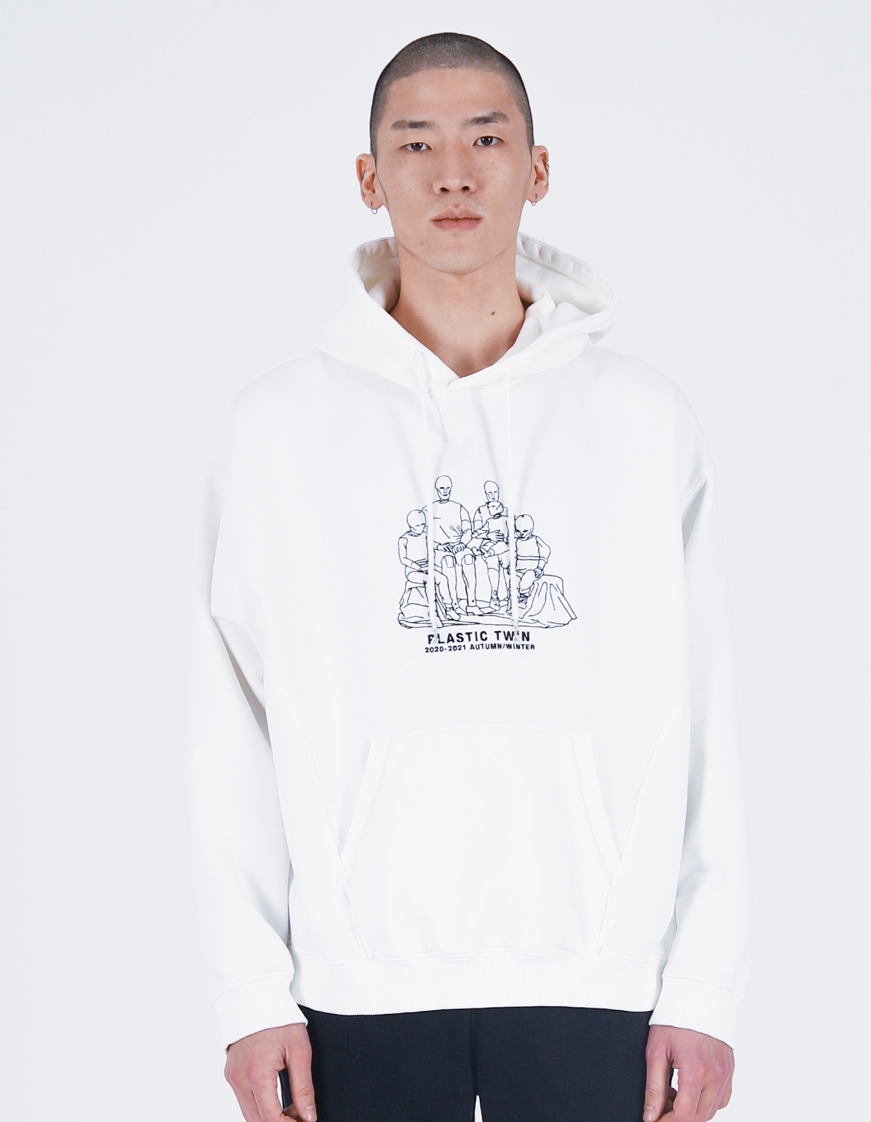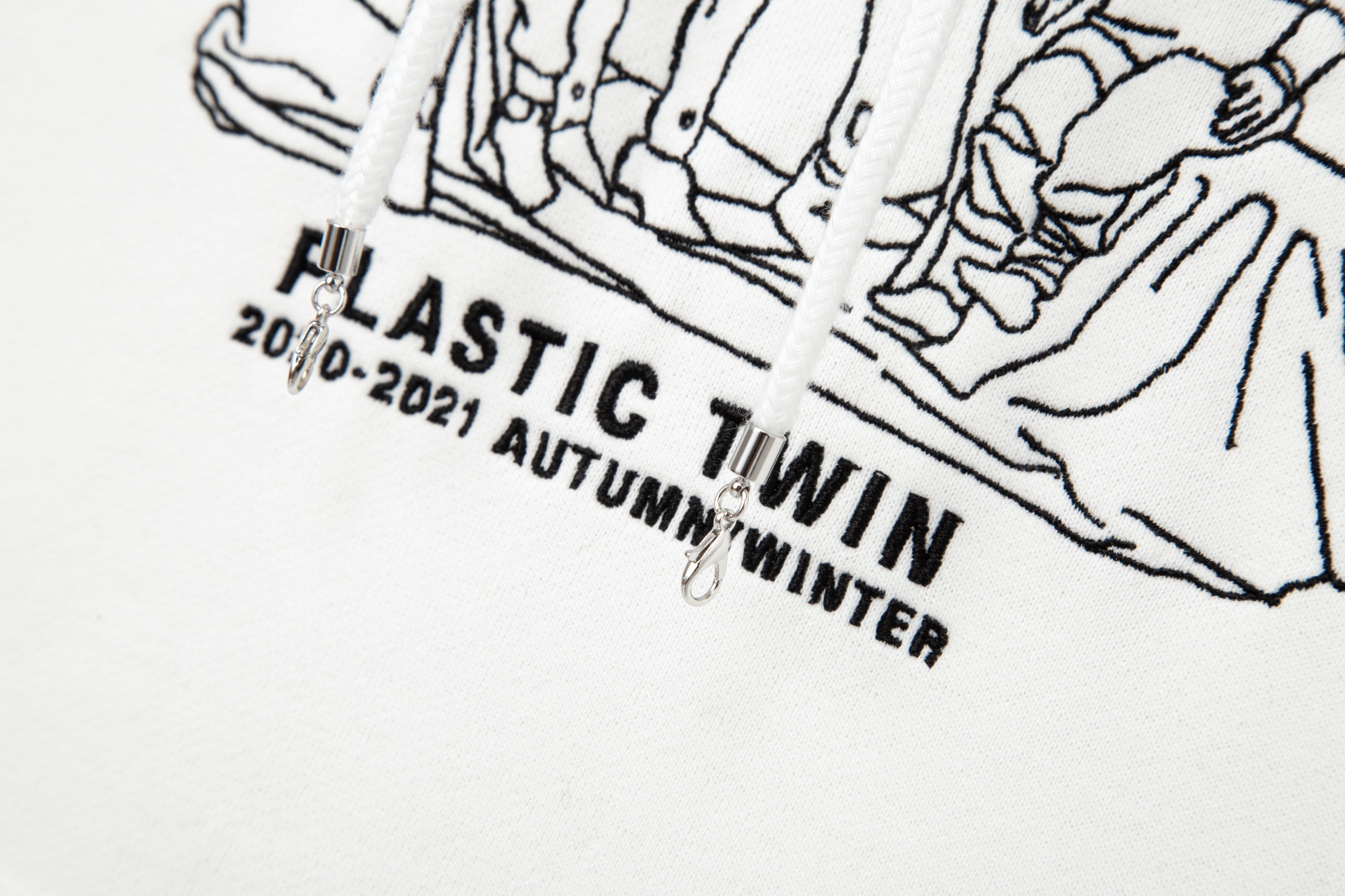 Plastic twin Embroidery Hoodie White