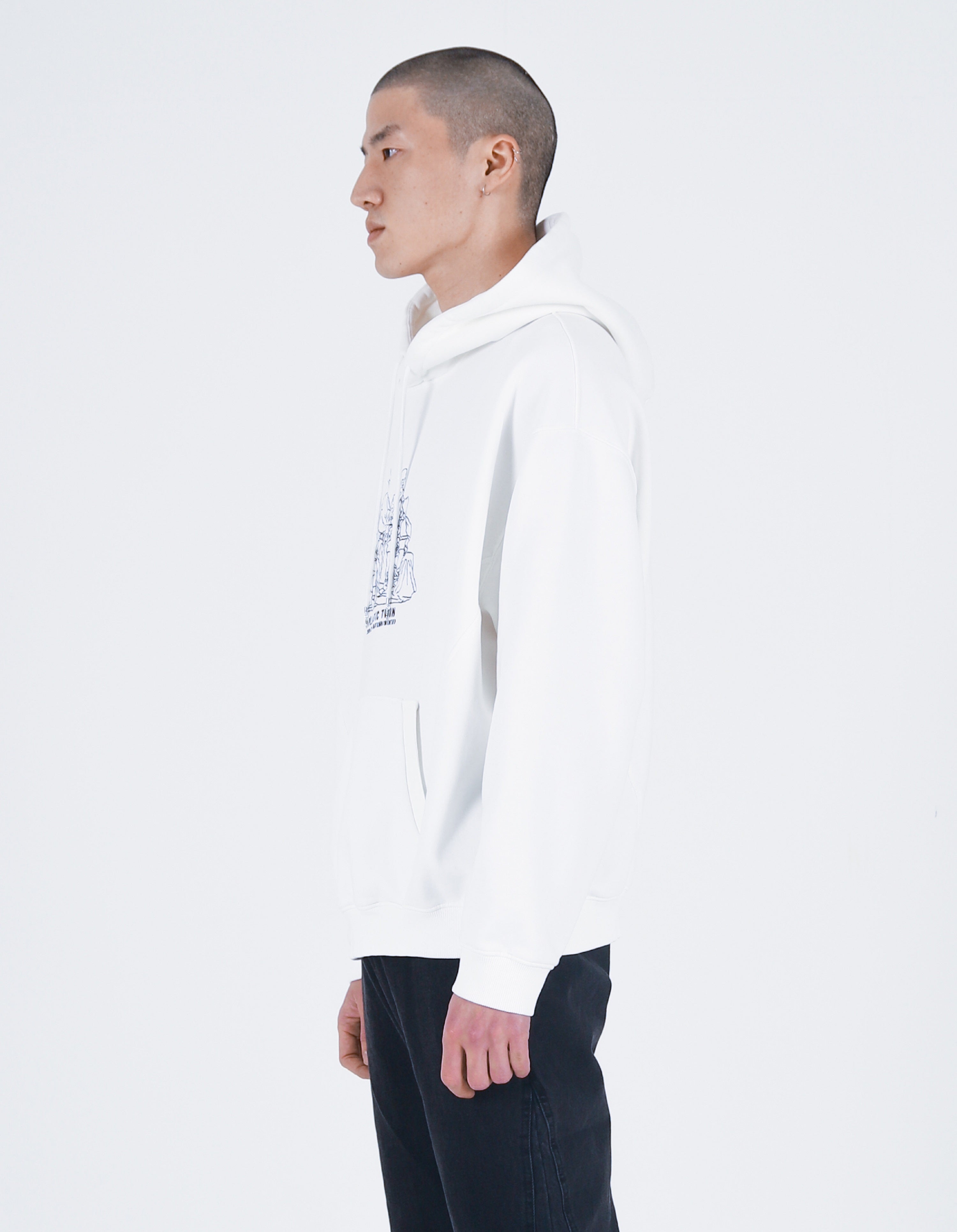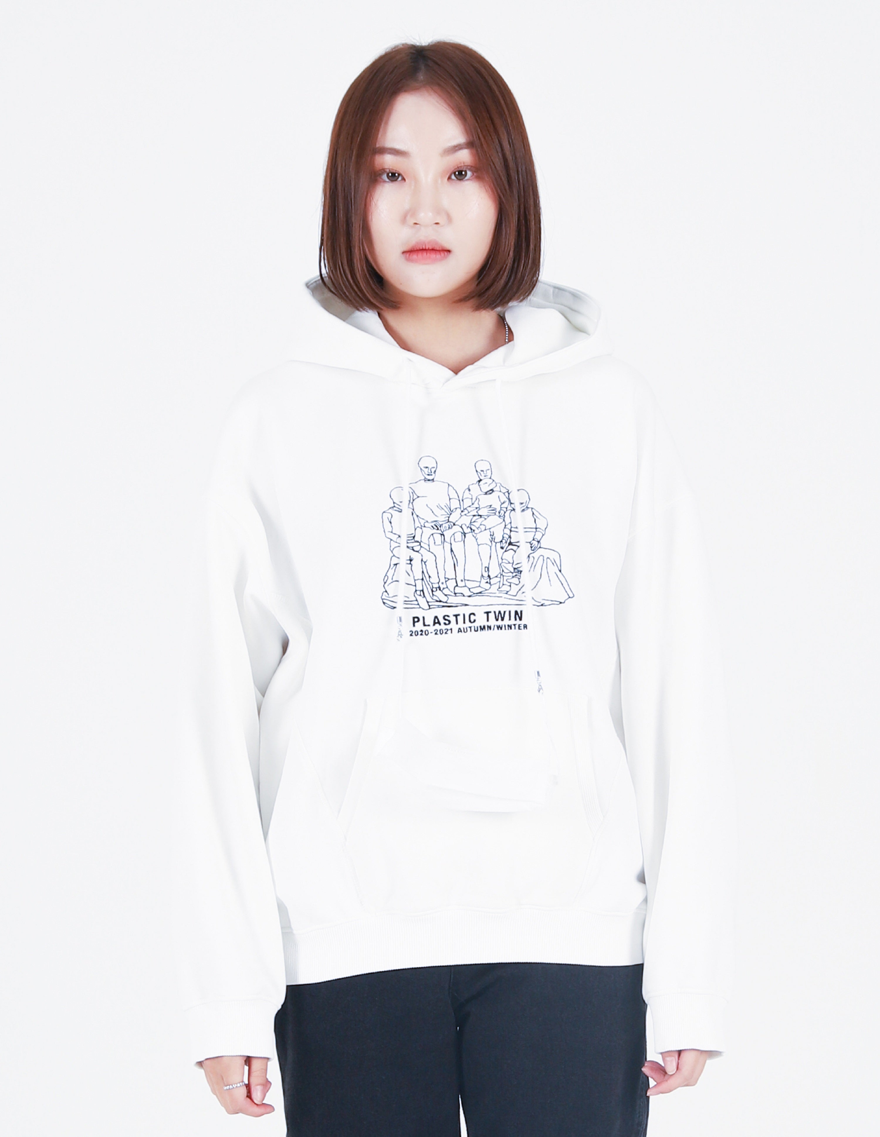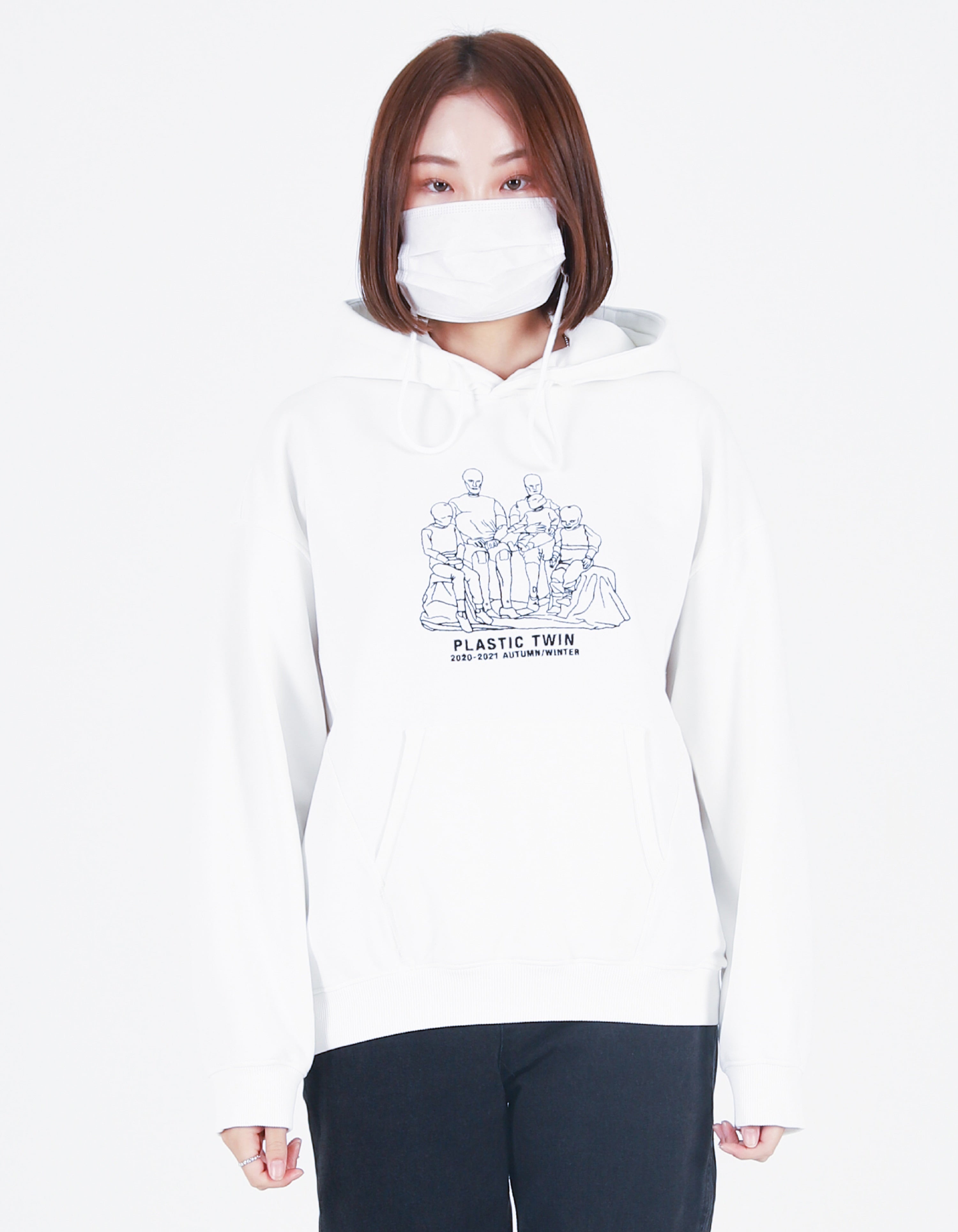 Plastic twin Embroidery Hoodie White