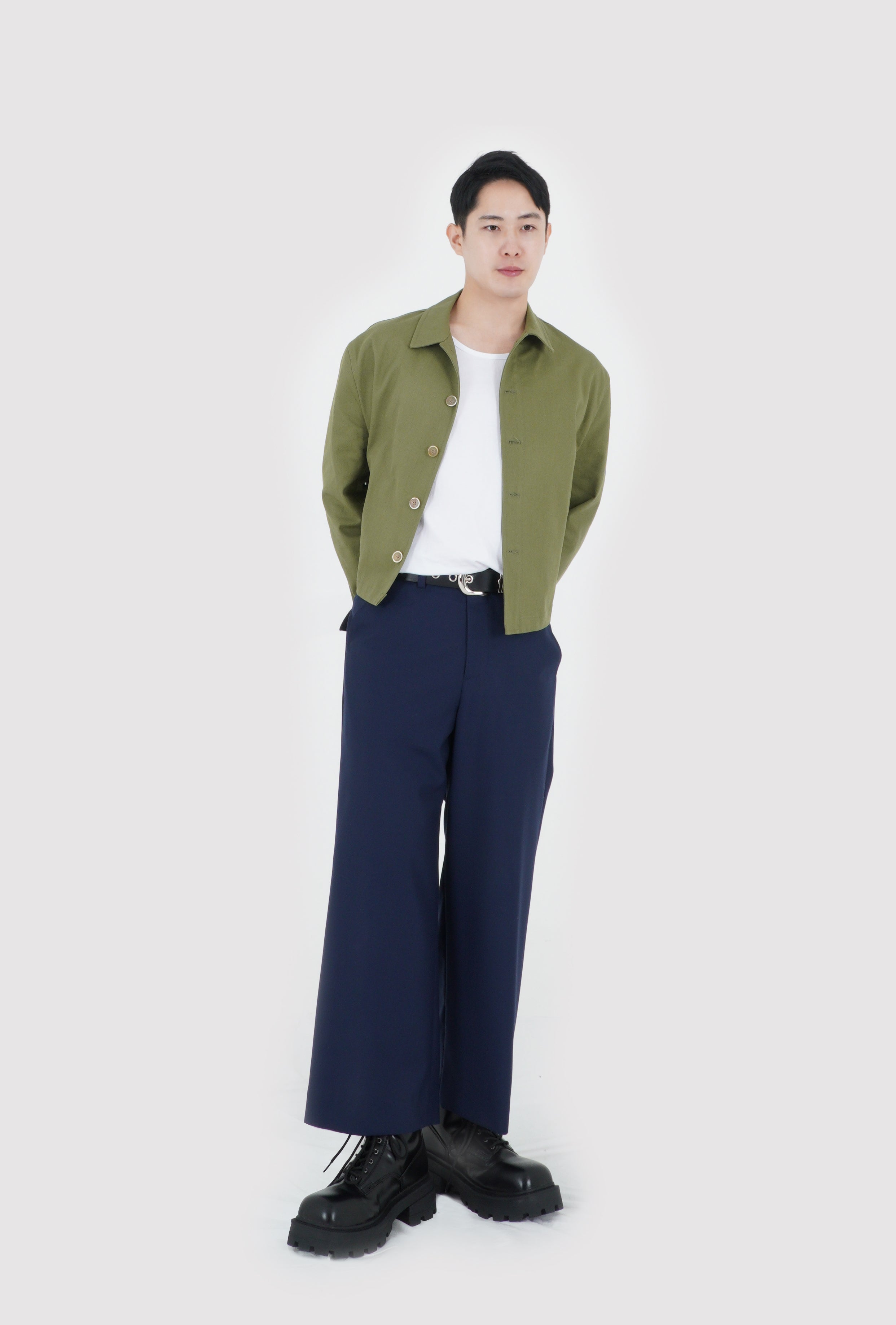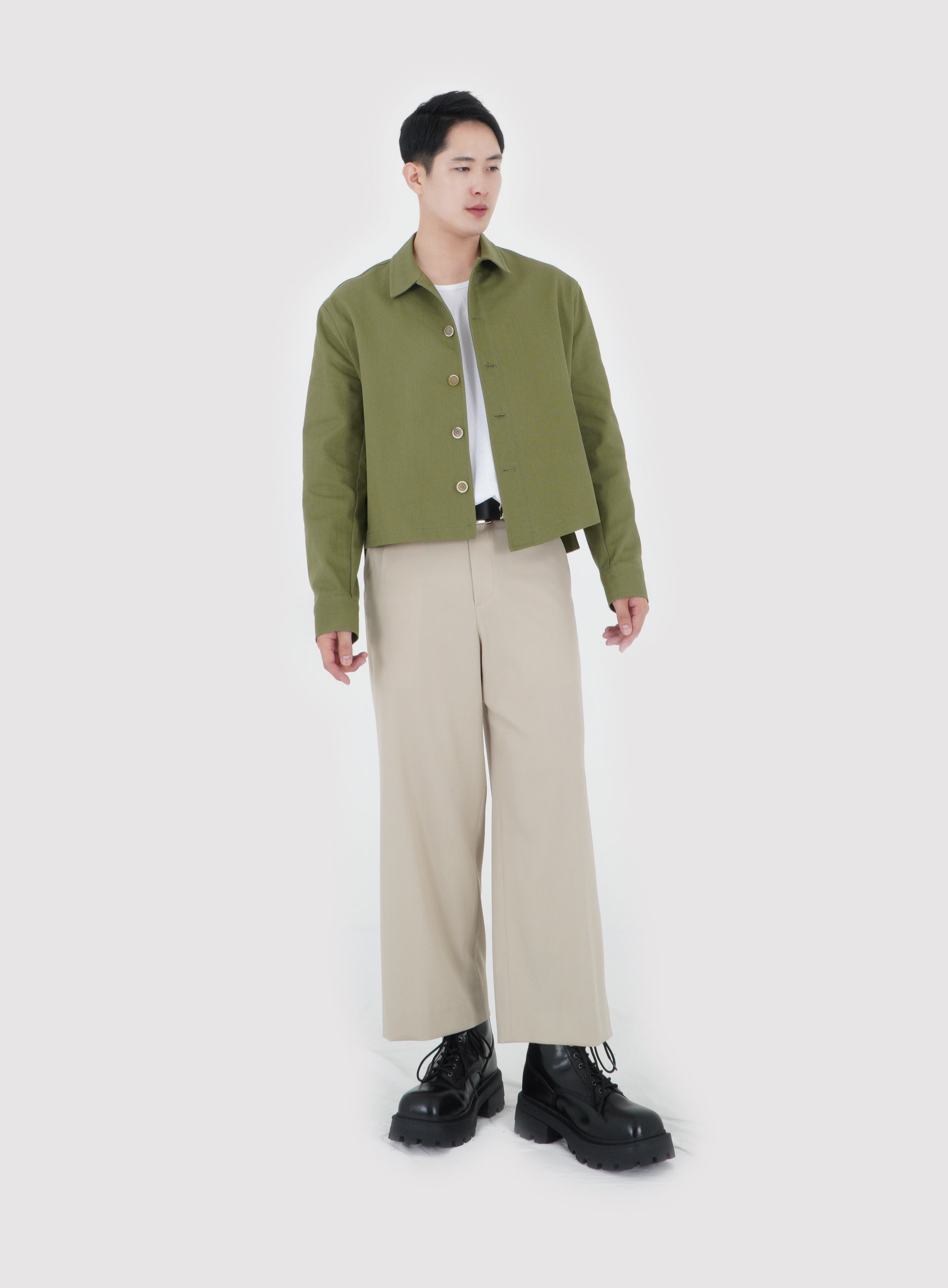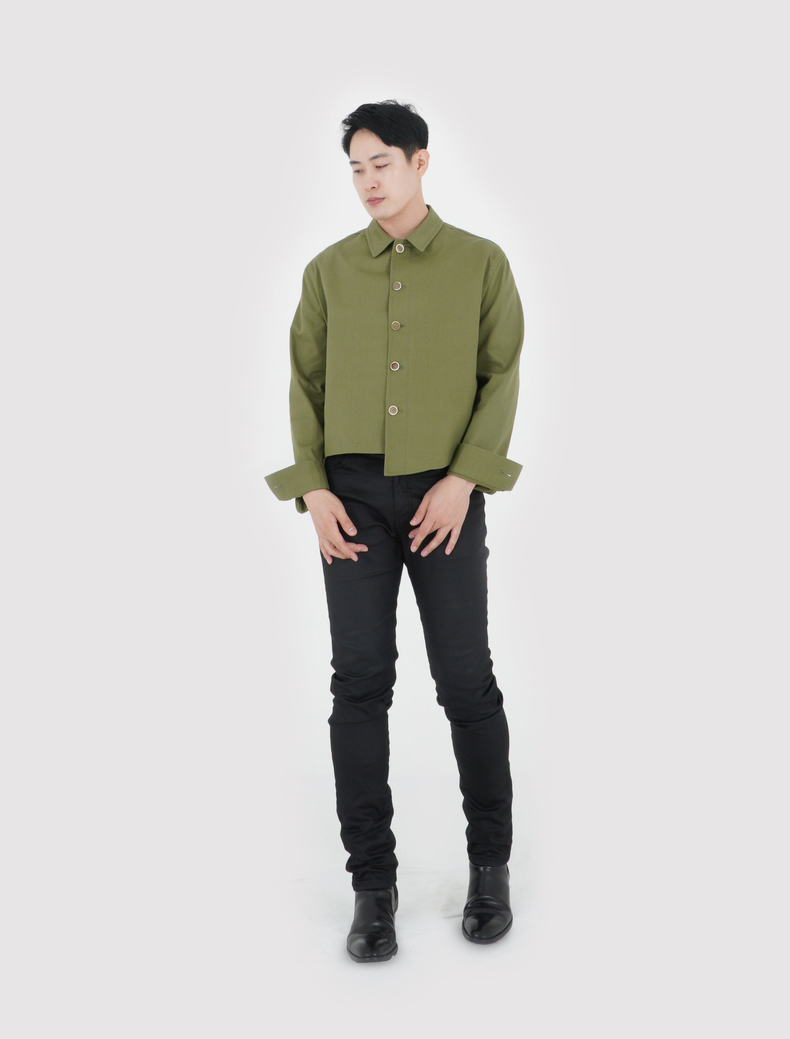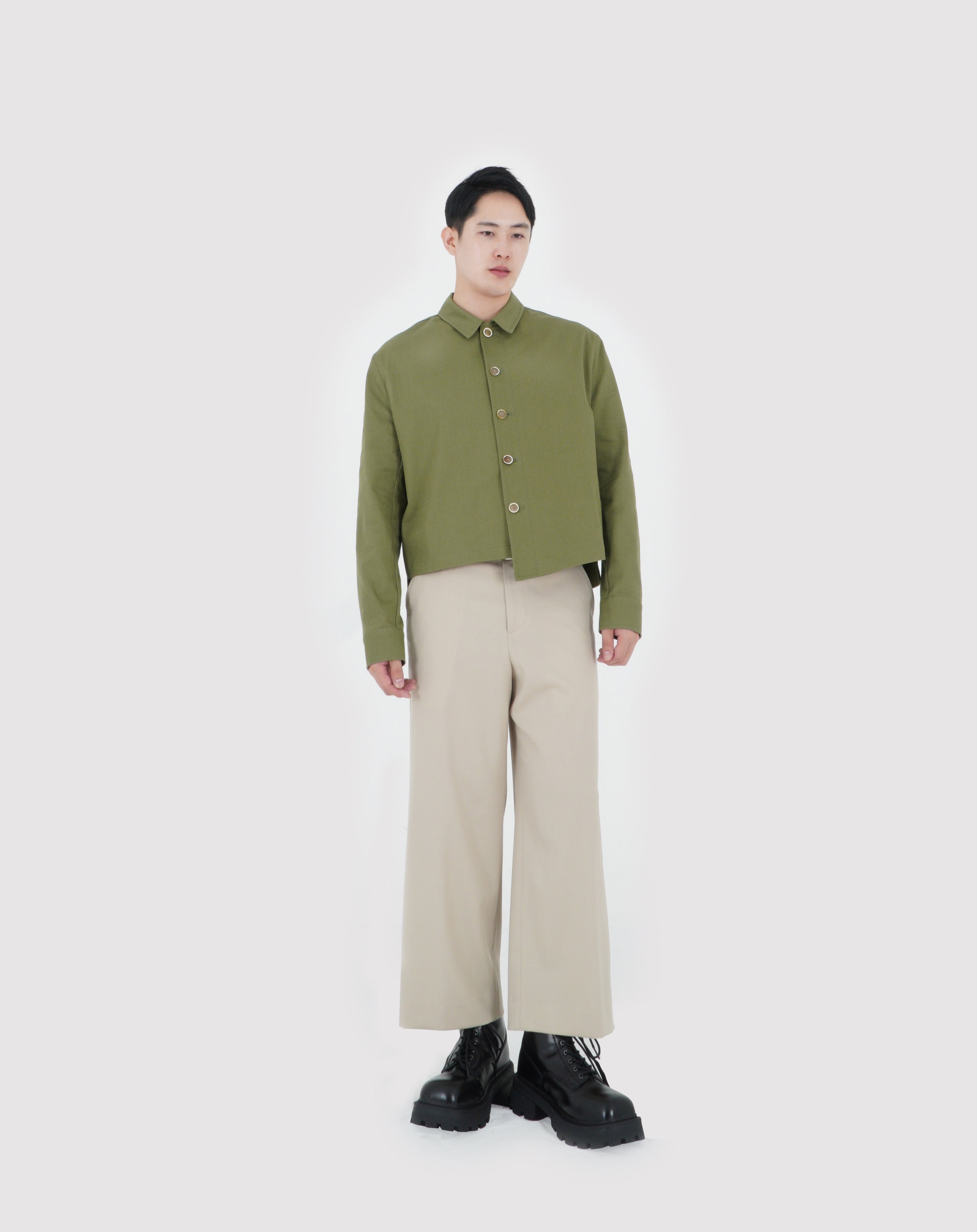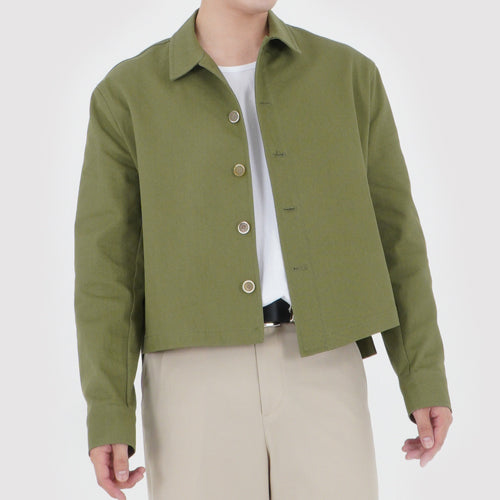 UNBALANCED CROPPED JACKET (KHAKI GREEN)