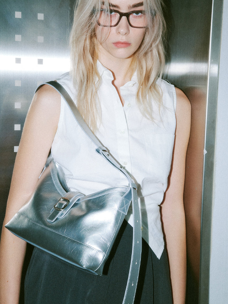 Veil middle bag - crinkle silver